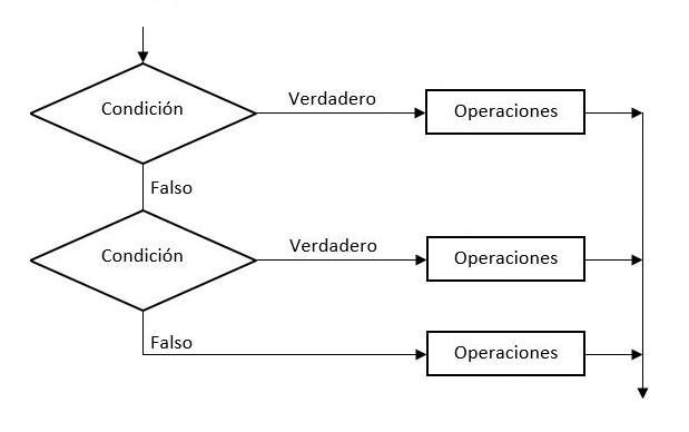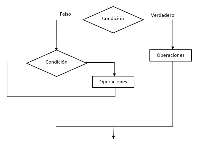 Podemos ver un ejemplo de una estructura condicional encadenada con el siguiente esquema.