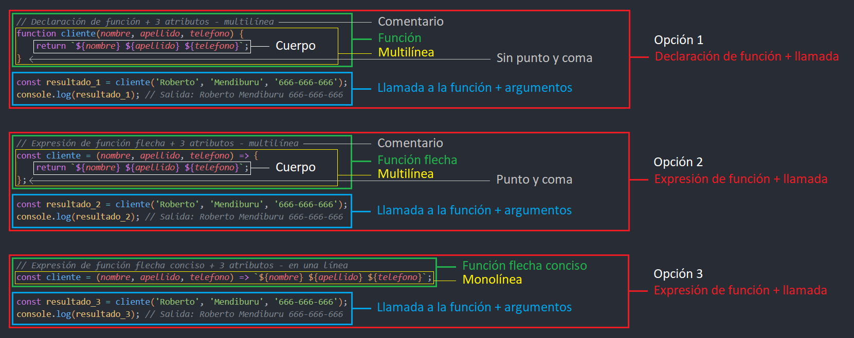 - Ejemplo 3: Función flecha conciso (monolínea)