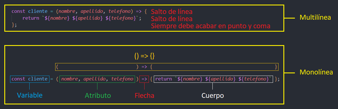 - Las funciones flecha con mas de un atributo, los paréntesis deben estar presentes.