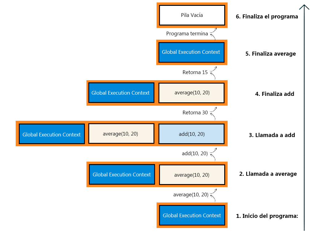 average(10, 20): Se crea un nuevo contexto de ejecución paraaveragey se coloca en la parte superior de la pila. - Dentro de