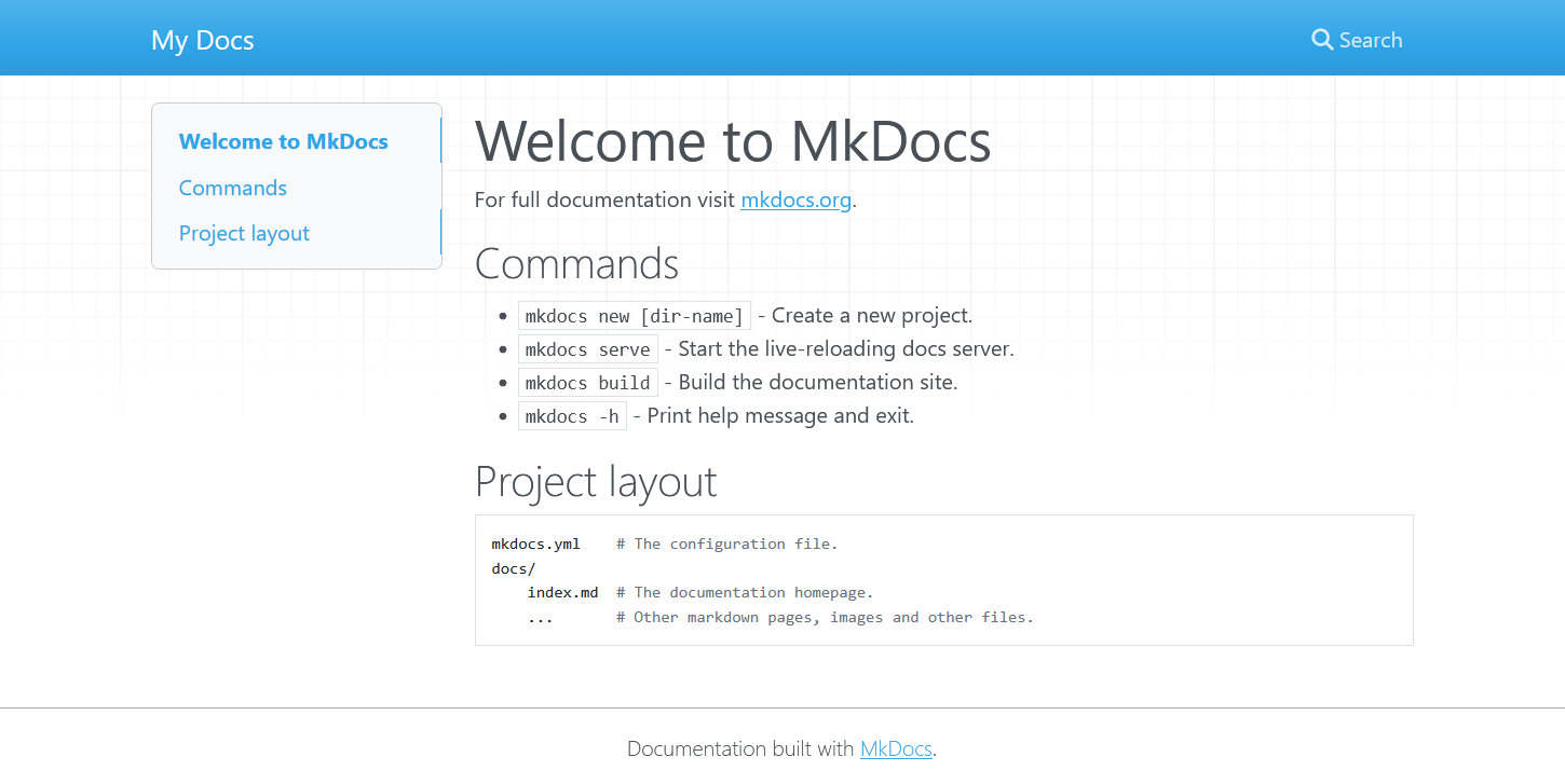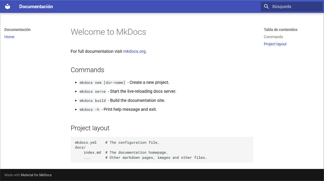 13. Con esto, ya tendrias instalado la librería mkdocs en un entorno virtual y creado el proyecto para empezar a editar tu propia documentación, porfolio, o lo que quieras de forma local.
